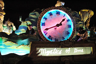"Let the good times roll" for those of you who didn't grow up in Mobile. Yes, last night we went to Mardi Gras! The MoT's (Mystics of Time) rolled last night. They're generally considered the biggest parade of the season and have always been my favorite, what with the dragons - and they always have neat themes. So we met up with my Mom and her crew and took Brayden to his first Mardi Gras. Brayden got several stuffed animals (a coveted prize, they're sparsely thrown) and I got a rose (yet another rarely thrown and desirable throw) while I was up on Eli's shoulders. Aside from that we got lots of beads and a couple moonpies. Here's some highlights from the evening.